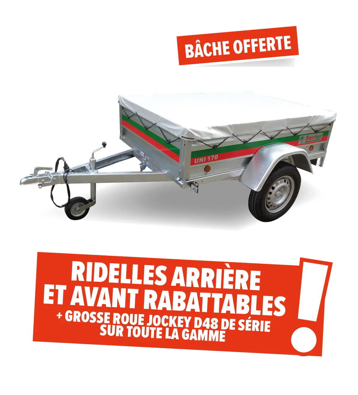 PTAC 500 kg, dimension utile 150 x 100 x 39 cm, roues 165/70×13,